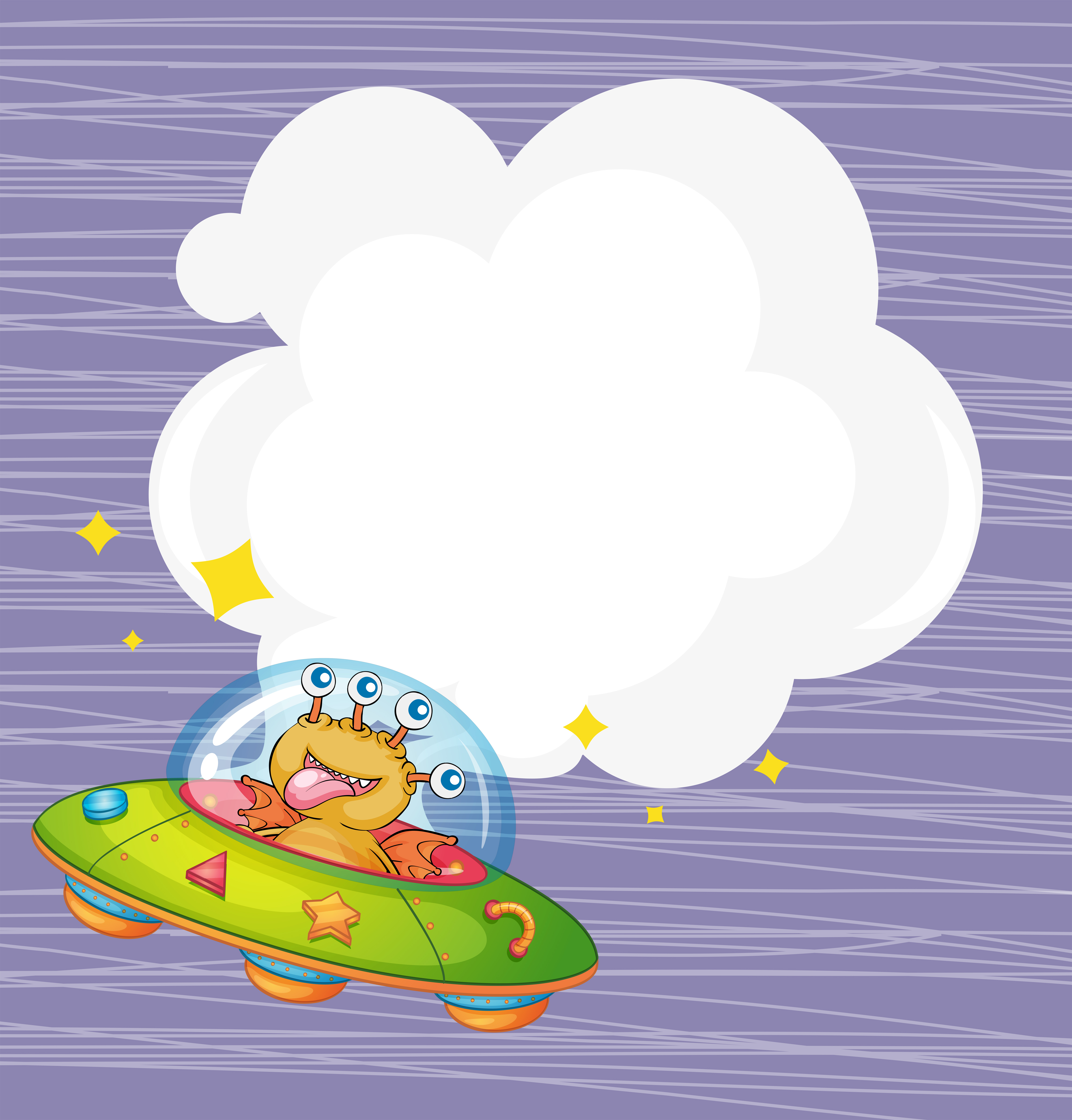 And the cute alien wobbled back into his flying saucer and flew back into outer space, leaving a glimmering stream behind.