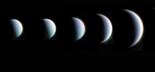 Venus rotates extremely slow so the phases are not on the same timeline as the moon. It takes approximately 584 days for Venus to go from a new phase to full phase. One day on Venus is equal to 243 days on Earth. If that’ not alluring enough, Venus also rotates backwards.